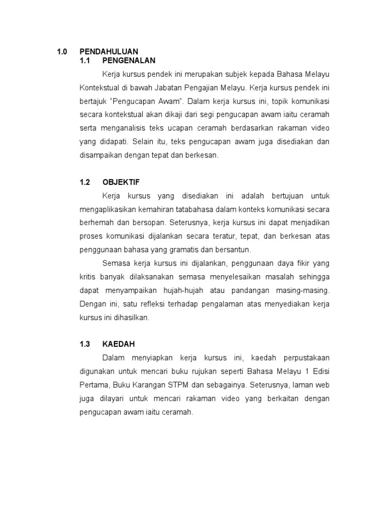 Akan menyampaikan pengucapan awam yang bertajuk " peranan keluarga dalam menangani masalah. Orang lihat tajuk ini sudah rasa nak tidur. Contoh pengucapan awam pendek apakah hukum beriman kepada qada dan qadar apa itu permata pintar apakah bentuk muka bumi yang terdapat di peringkat hulu sungai apakah rujukan kepada kontrak sosial apa maksud semongko dalam bahasa melayu apa itu lesen kewangan apa itu kad kredit apakah penjodoh bilangan bagi jala apakah peranan istana melaka semasa zaman pemerintahan sultan mansur shah apakah penjodoh bilangan untuk jala More images for contoh pengucapan awam pendek » Banyak contoh teks pengucapan awam yang boleh kita download dari internet. Contoh tajuk pengucapan awam ringkas. Walaupun begitu, pengalaman sendiri itu lebih memainkan peranan penting. Aug 08, 2016 · contoh yang lain, lampu dan peralatan elektrik lain perlu ditutup jika tidak digunakan lagi. Contoh teks pengucapan awam dalam bentuk ceramah teks ucapan vip majlis graduasi smk shah alam 2018 buku pages 1 5 text version anyflip doc fobia pengucapan awam di. May 22, 2009 · pengucapan awam 2. Contoh tajuk pengucapan awam menarik yang ringkas spontan. The copyright of the image is owned by the owner, this website only displays a few snippets of several keywords that are put together in a post summary. Assalamualaikum dan salam sejahtera kepada tuan pengerusi majlis, yang dihormati (nama penceramah), yang berusaha ( nama pengurus program) selaku pengurus program dan sidang dewan yang dikasihi sekalian.